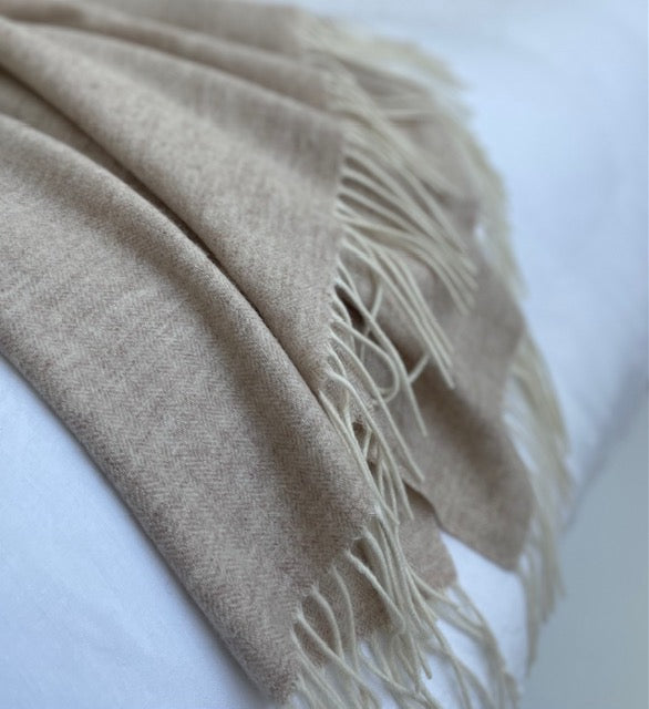 Pure Cashmere & Merino Large Throw/Blanket woven in a very fine herringbone weave in 5 fabulous natural colours.