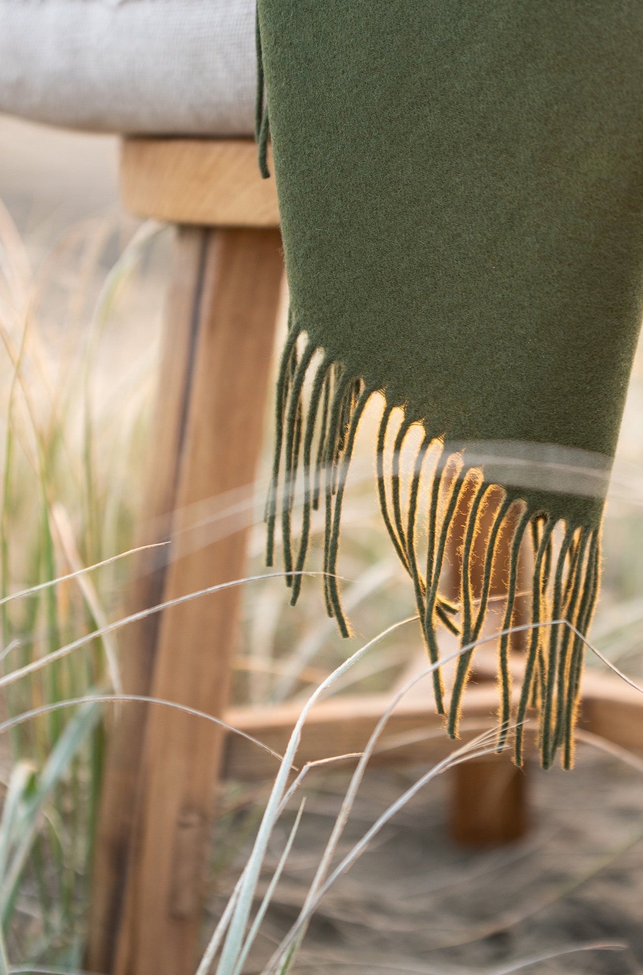 Woven in fine twill weave and then slightly brushed for a luxuriously soft finish with fringed end detail.