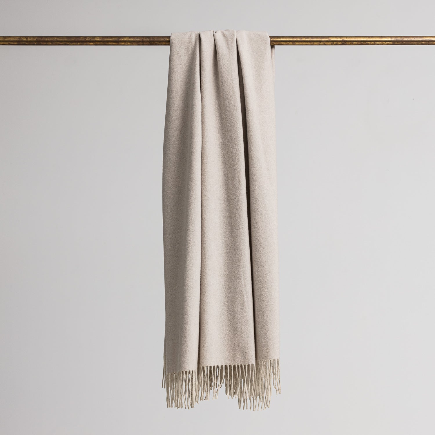 Woven in fine twill weave and then slightly brushed for a luxuriously soft finish with fringed end detail.