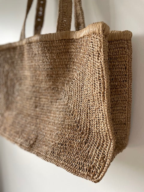 The Marla Raffia Market Bag is crafted by local artisans in Madagascar off the African Coast.