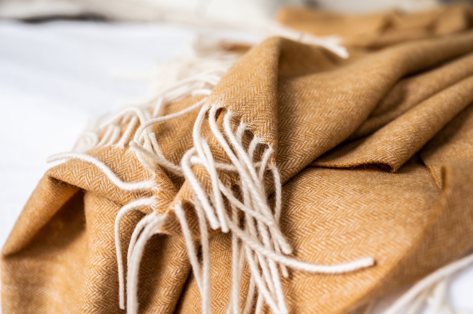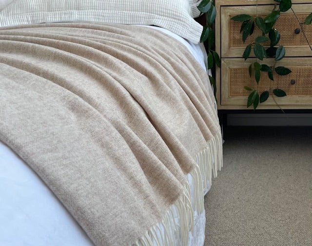 Pure Cashmere & Merino Large Throw/Blanket woven in a very fine herringbone weave in 5 fabulous natural colours.