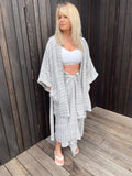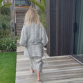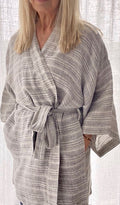 A super versatile Kimono in pure handloomed linen in a subtle woven monochrome stripe. Our Kimono is crafted from a handloomed linen that is stonewashed and is the most soft drapey linen I think I have ever experienced.