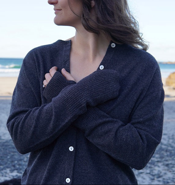 Our signature extended rib sleeve with thumbhole for a little extra warmth when you need it. Beautiful natural shell buttons, & cotton labels - No plastic here!
