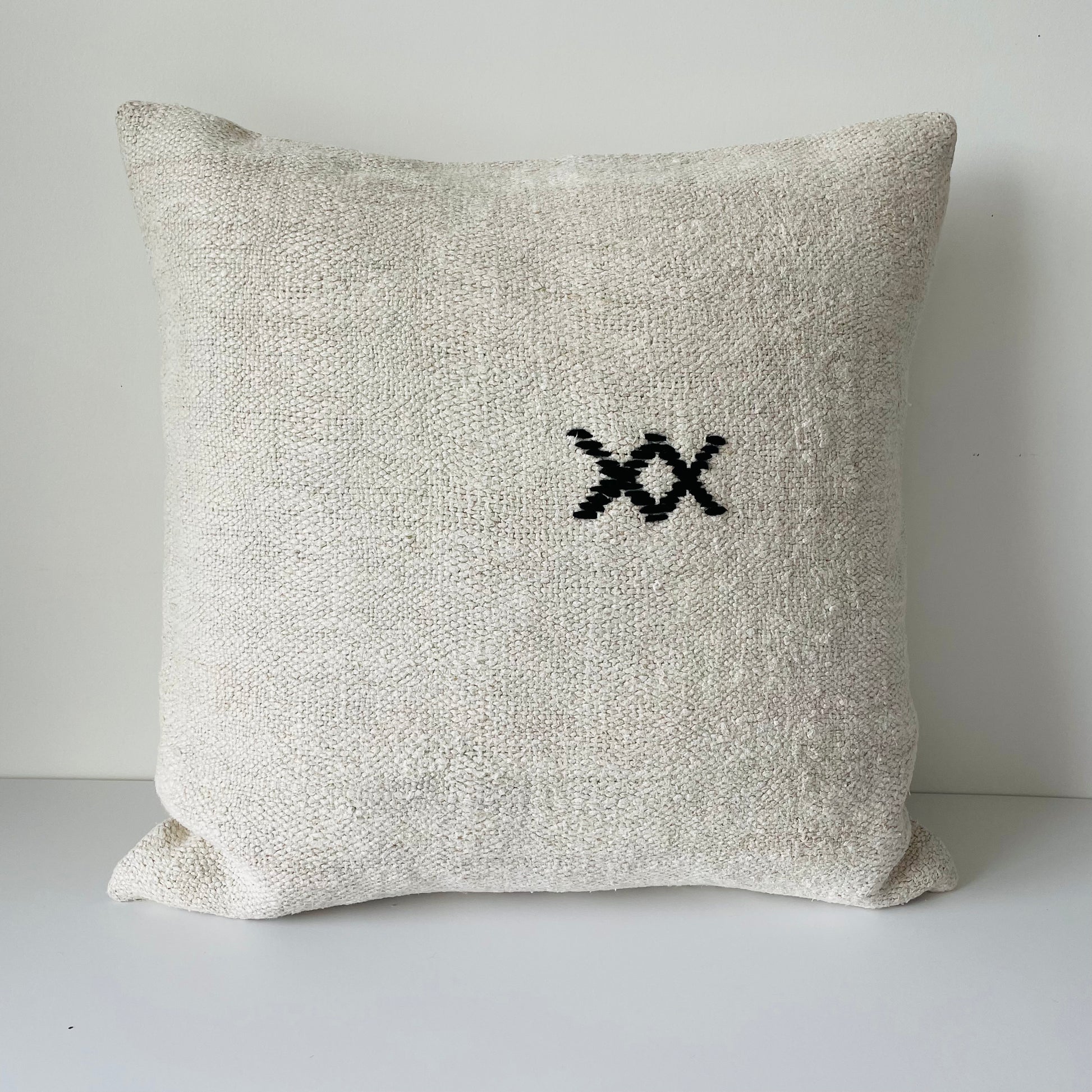Vintage Hemp Cushion - Black Crosses