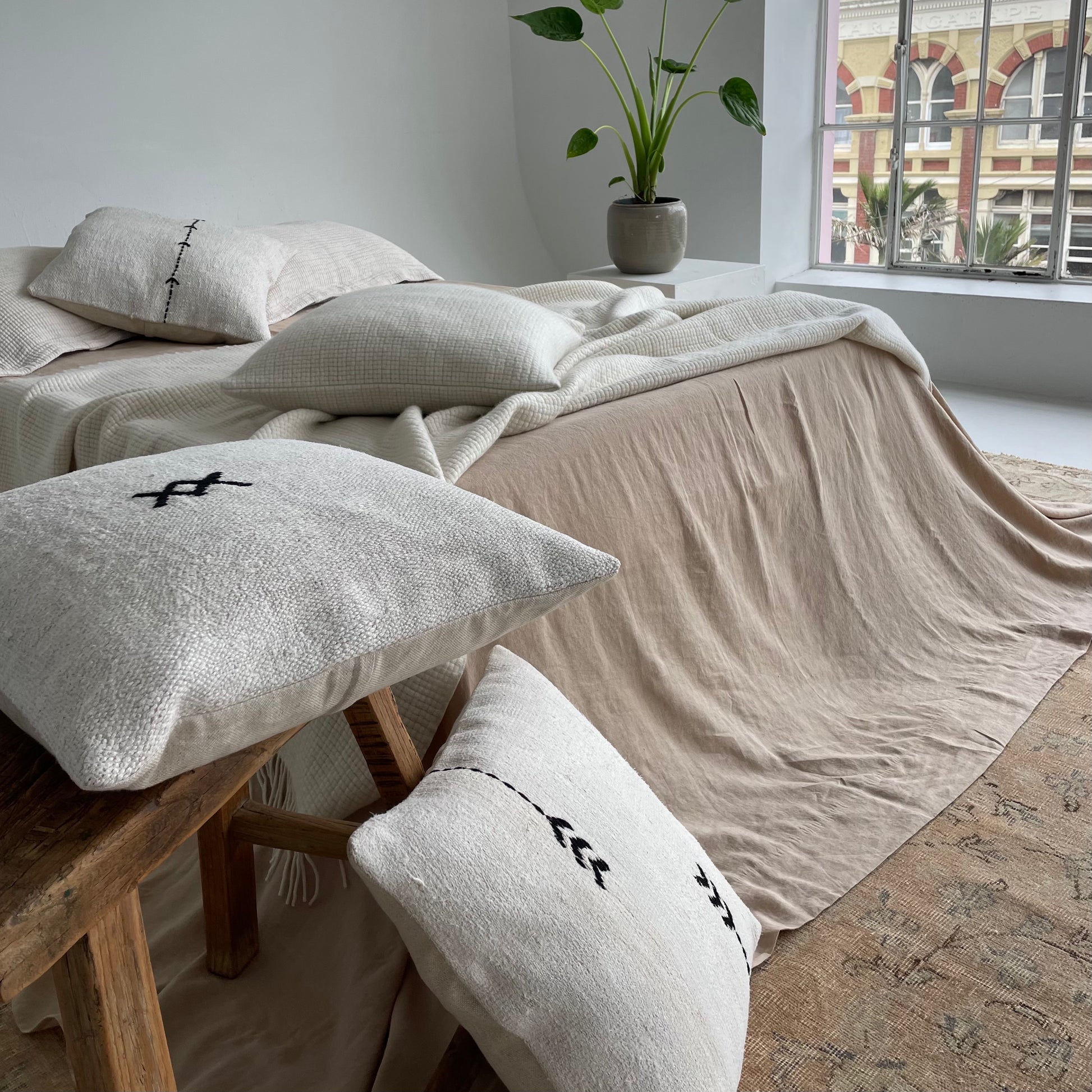 These cushions are surprisingly soft and the perfect accessory for a monochrome palette adding loads of texture and soft muted blends of cream and black.