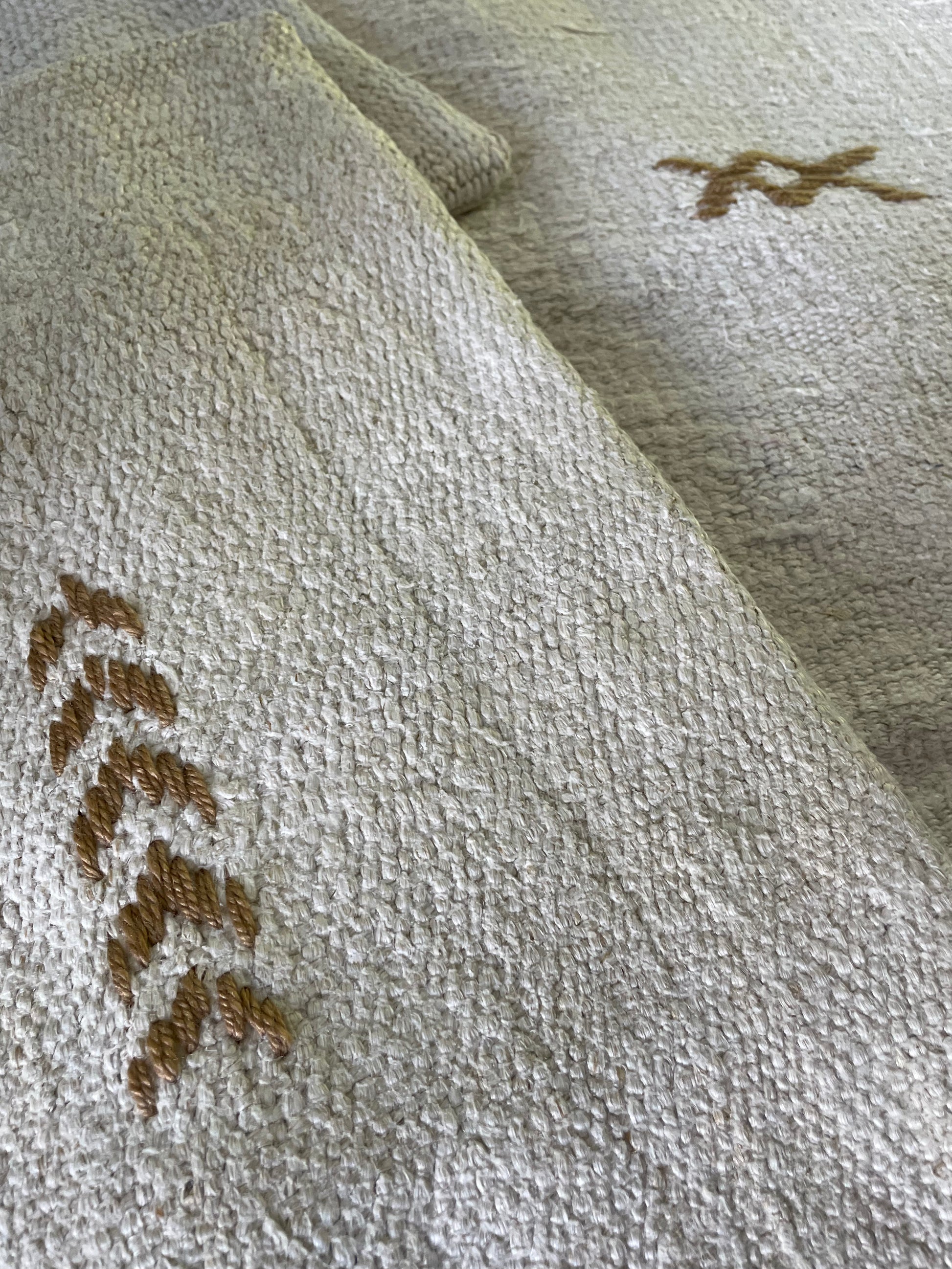 On a neutral background of pure hemp softened with age and with a beautiful patina these covers are then hand embroidered in unique designs. Fabulously textural and soft and backed with a heavy natural linen.